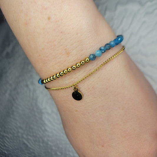 Pulsera de cristal Aqua en capas - Aqua / Oro / Colgante / Pulsera de dos capas