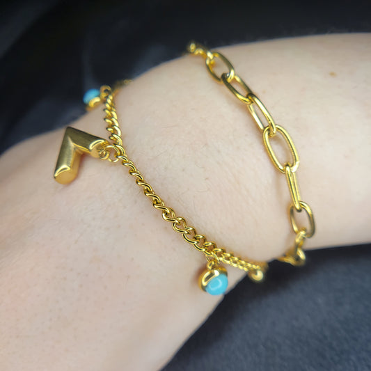 Pulsera Doble Capa - Piedra Turquesa / Colgante "V"