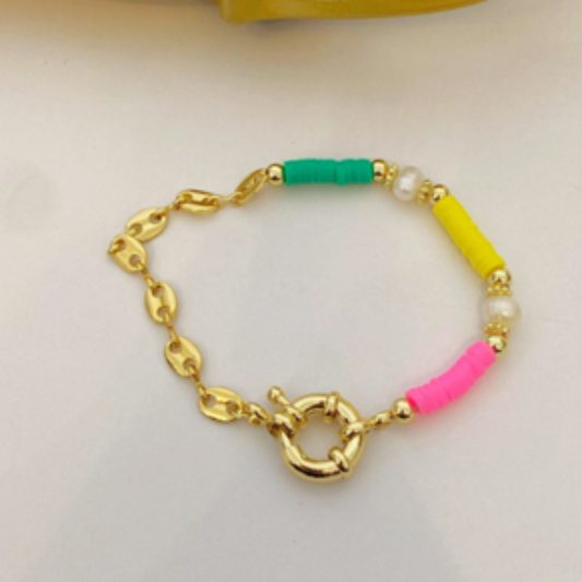 Pulsera de Perlas de Colores- Verde / Amarillo / Rosa / Acero Inoxidable