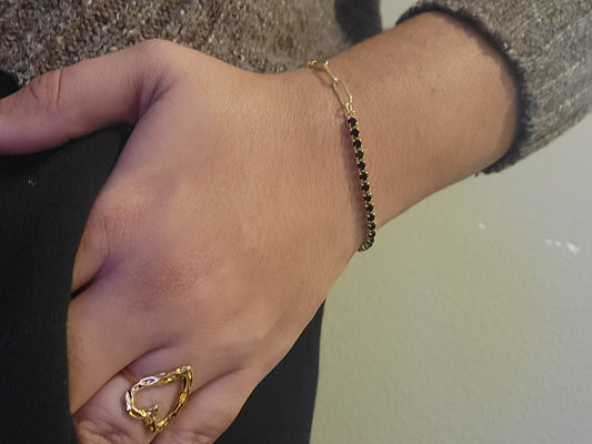 Pulsera de Zafiro Negro - Materiales Mixtos / Zafiro / Acero Inoxidable / Textura