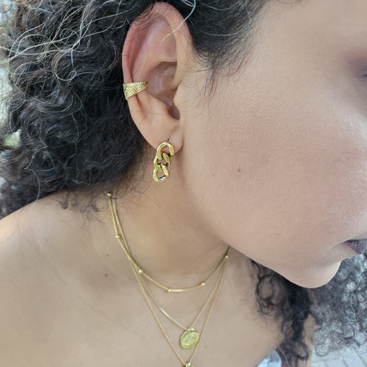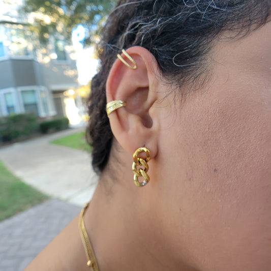 Ear Cuff con cadena y perlas - No se necesita perforación / Plata / Oro