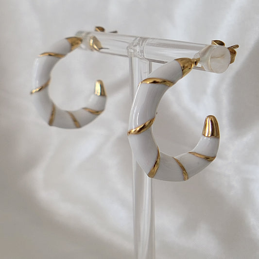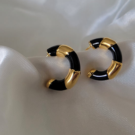 Pendiente de aro con tiras - Oro y blanco / Oro y negro