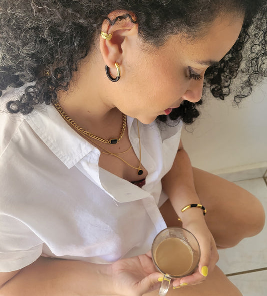Pendiente de aro mini tira - oro y blanco / oro y negro / mini aros