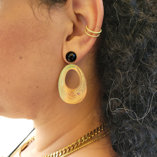 Pendiente colgante negro y dorado - Piedra negra grabada / natural