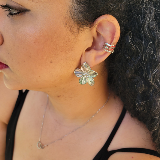 Stud de flor de plata - Pendiente / Acero inoxidable